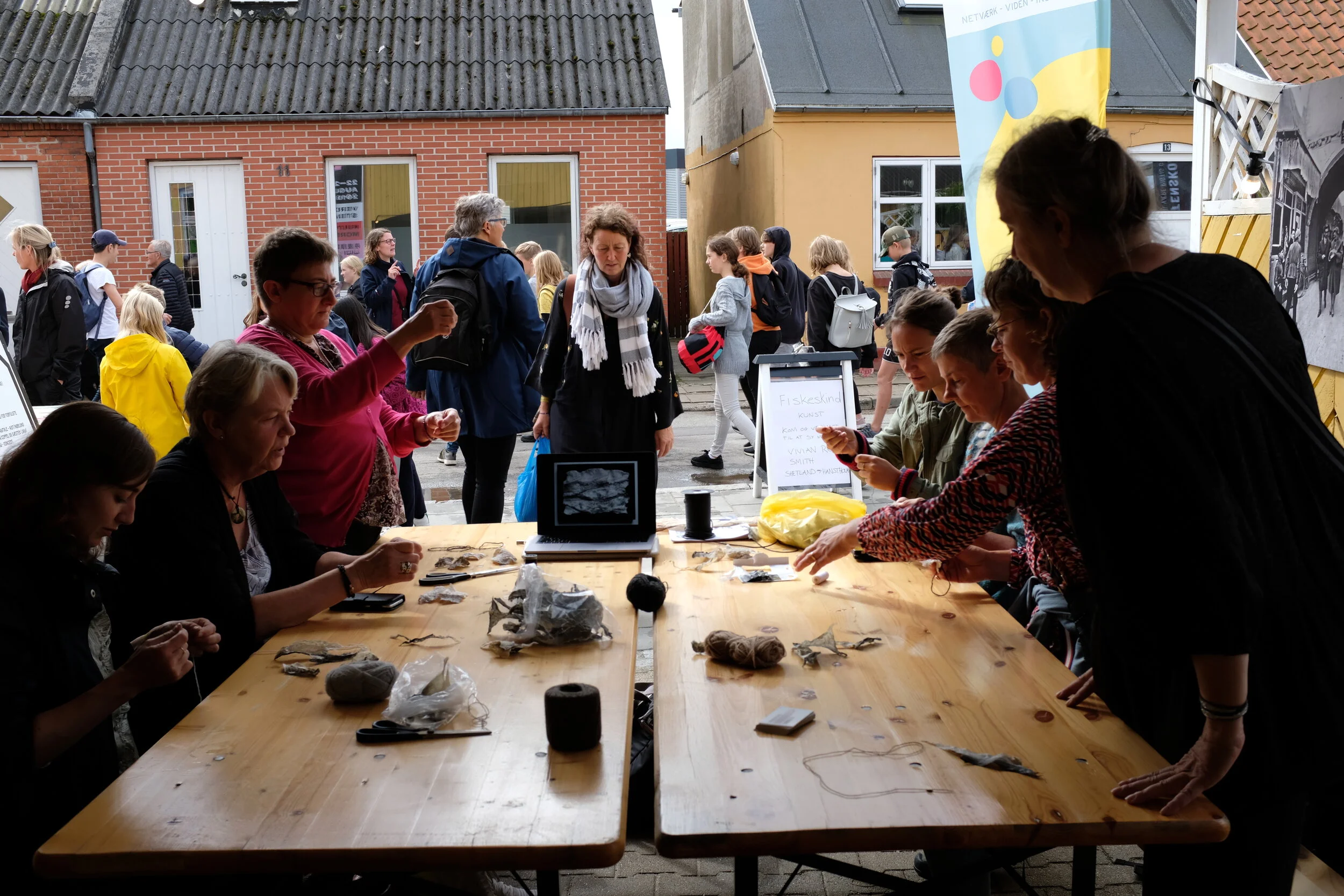 One workshop at Det Gamle Røgeri in Hanstholm and three workshops for Kulturmødet, explored fish skin as a material. Participants were invited to make an artwork using preserved haddock skins whilst discussing the sea as a connector and living in a place depicted as being ‘on the edge’.